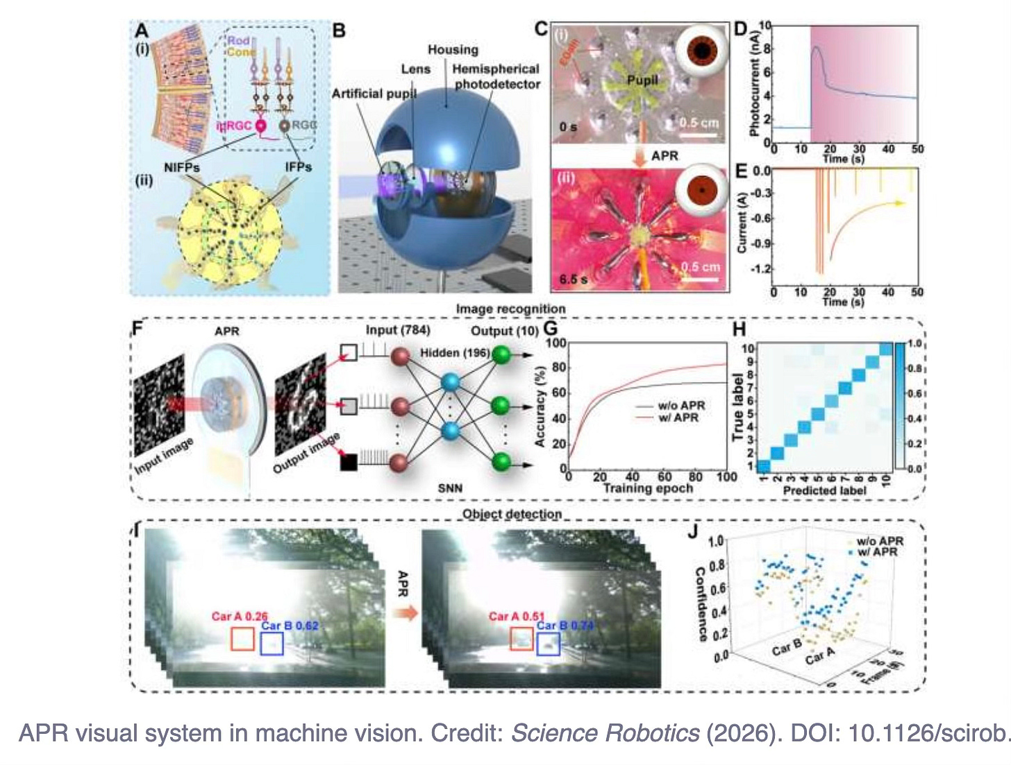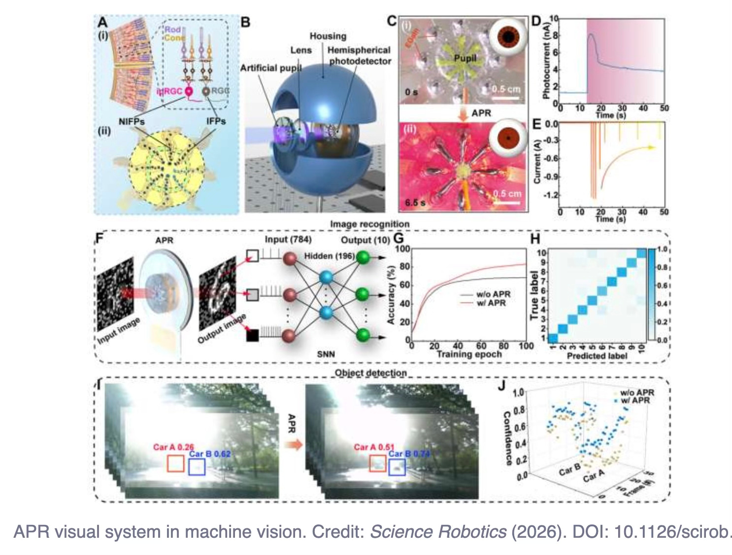 The artificial eye has uses in robotics, autonomous vehicles, medial imaging, drones and neurotrophic computing. The eye improves the ability to capture and analyze images in dynamic real world settings and under changing light conditions. The team is working on scaling down the photodetectors to reduce response time, optimizing the electrode materials to enhance stability and energy efficiency and improving the retina’s photosensitivity.