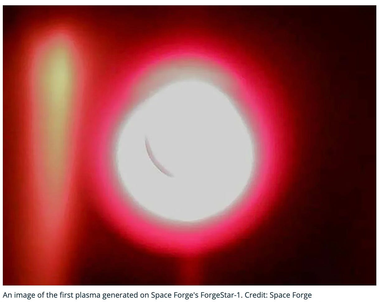UK company Space Forge has generated a plasma in a 1000C furnace aboard its ForgeStar1 satellite currently in low earth orbit. The goal is to manufacture semi conductors in space. The microgravity environment should lead to semiconductors with fewer defects than those made on earth. Gravity on Earth drives convection in molten materials causing semiconductor crystals to grow unevenly.