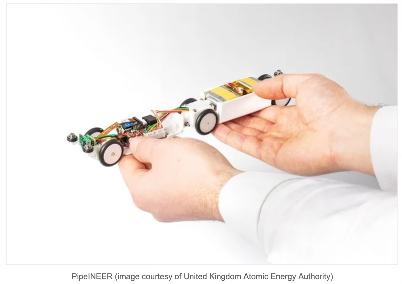 The UK Atomic Energy Authority and CERN have developed a mouse sized robot to inspect parts of the Large Hadron Collider. The circumference of the collider is roughly 27 kilometers long and straddles the border of France and Switzerland. There are a range of narrow pipes that carry the actual particle beam around the collider. These pipes operate in a vacuum at -271C and are surrounded by superconducting magnets. They are positioned deep within the infrastructure making it impossible for human access and inspection.