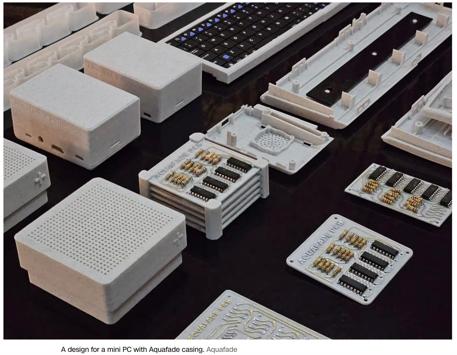 Aquafade is a UK startup that has developed a water soluble plastic that can replace current plastic materials used in electronics. The product is designed to simply dissolve away in about 6 hours when the computer or device case is opened and placed in water. This makes it easier to recover and recycle the valuable components inside. The disassembly is the most labor intensive and problematic part of the recycling process.